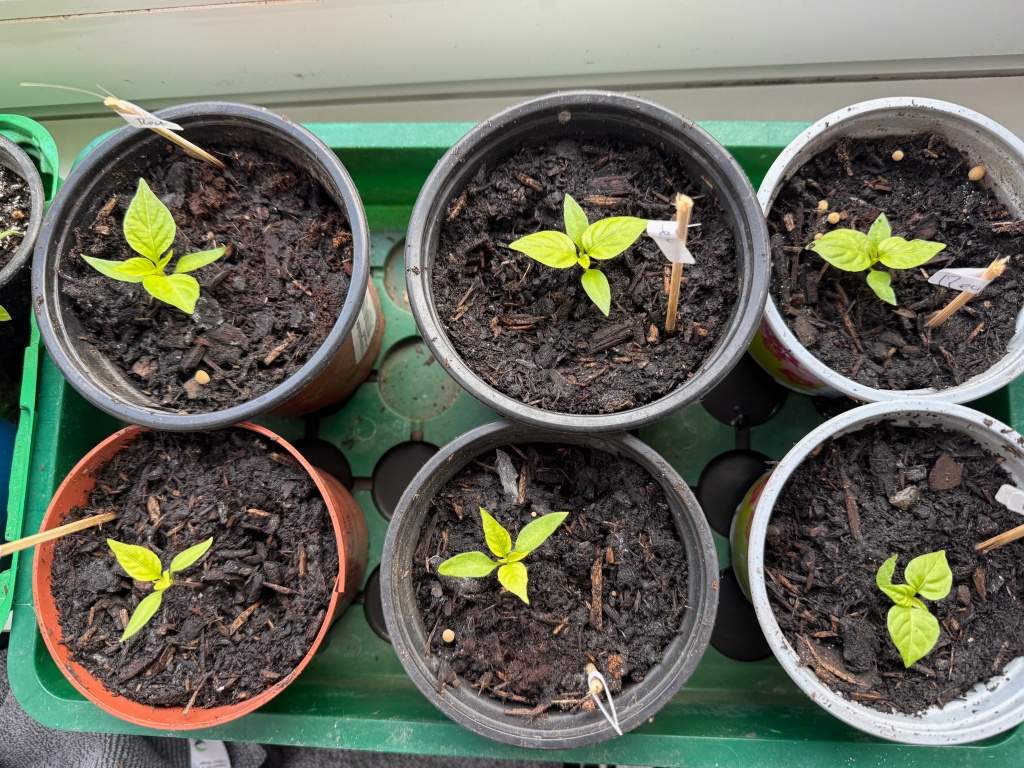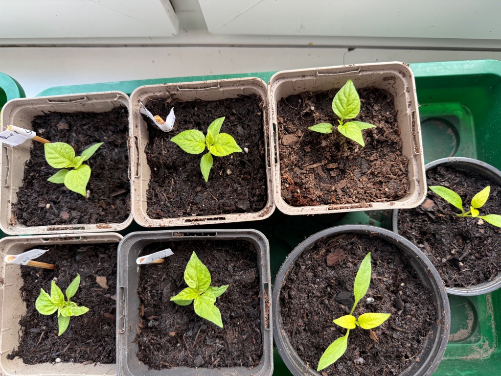 Außer Carolina Reaper (bis 2,2 Mio. Scoville-Units) habe ich noch Habanero Red Savina (350.000 – 577.000 SHU), Red Habanero (150.000 – 370.000 SHU) und Jalapeno (2.500 – 8.000 SHU) auf der Fensterbank angezogen. Bleibt zu hoffen, dass die Pflänzchen gut gedeihen werden, auf dass uns ihre Früchte im Sommer in den Kreislaufkollaps treiben!