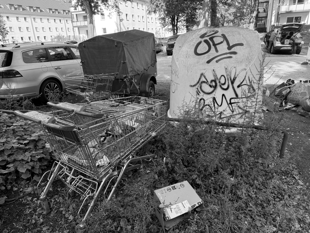 Heute, 2025, sieht die kleine Welt um den Kaufhof nicht mehr so sehr nach Miteinander aus. Die Kohäsion der Gesellschaft ist ein ganzes Stück weit zerbröselt, erkennbar an der Gleichgültigkeit und Verantwortungslosigkeit, mit der immer mehr Menschen ihren unmittelbaren Lebensbedingungen begegnen.